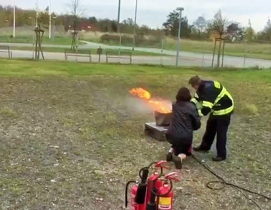 Kameraden der freiwilligen Feuerwehr aus Lettin, erklärten in einem Vortrag die Arten und Funktionsweisen von Feuerlöschern. Um die Inhalte zu veranschaulichen, gab es im Anschluss eine praxisnahe Einweisung. Hier konnten die Teilnehmer direkt selbst einem Feuer die Luft nehmen.